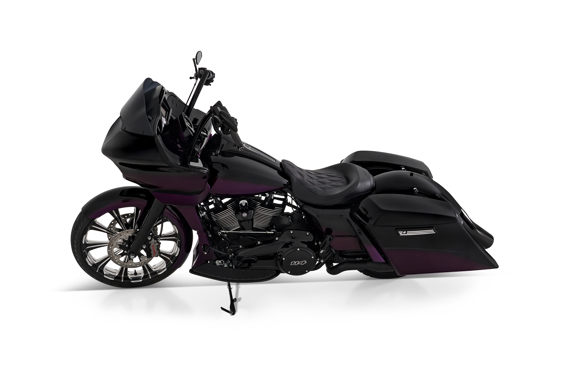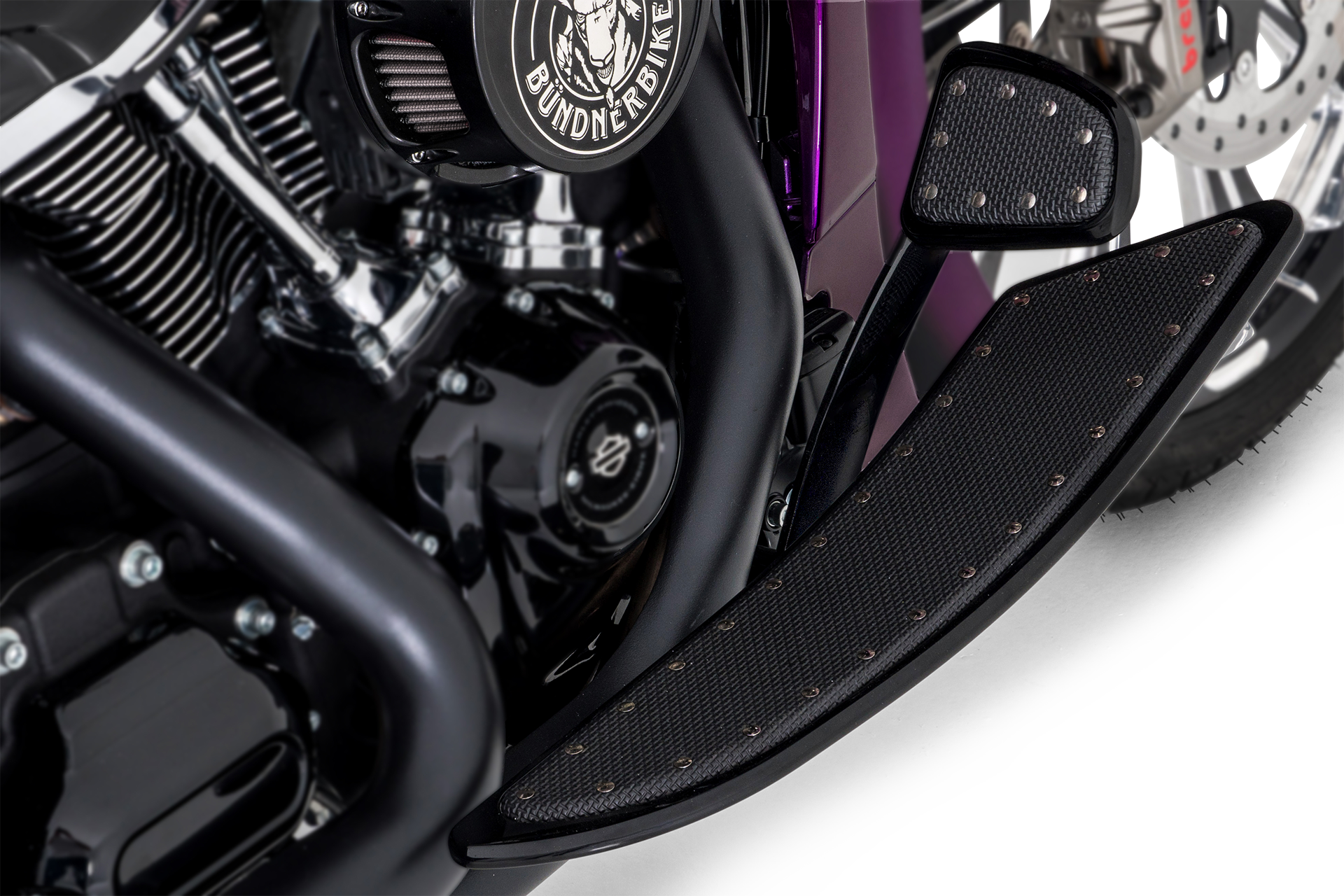 - Das gesamte Motorrad strahlt eine moderne und minimalistische Ästhetik aus, wobei die Kombination aus Schwarz und Violett einen stilvollen Kontrast erzeugt.