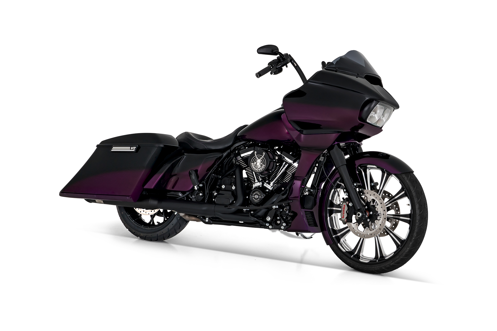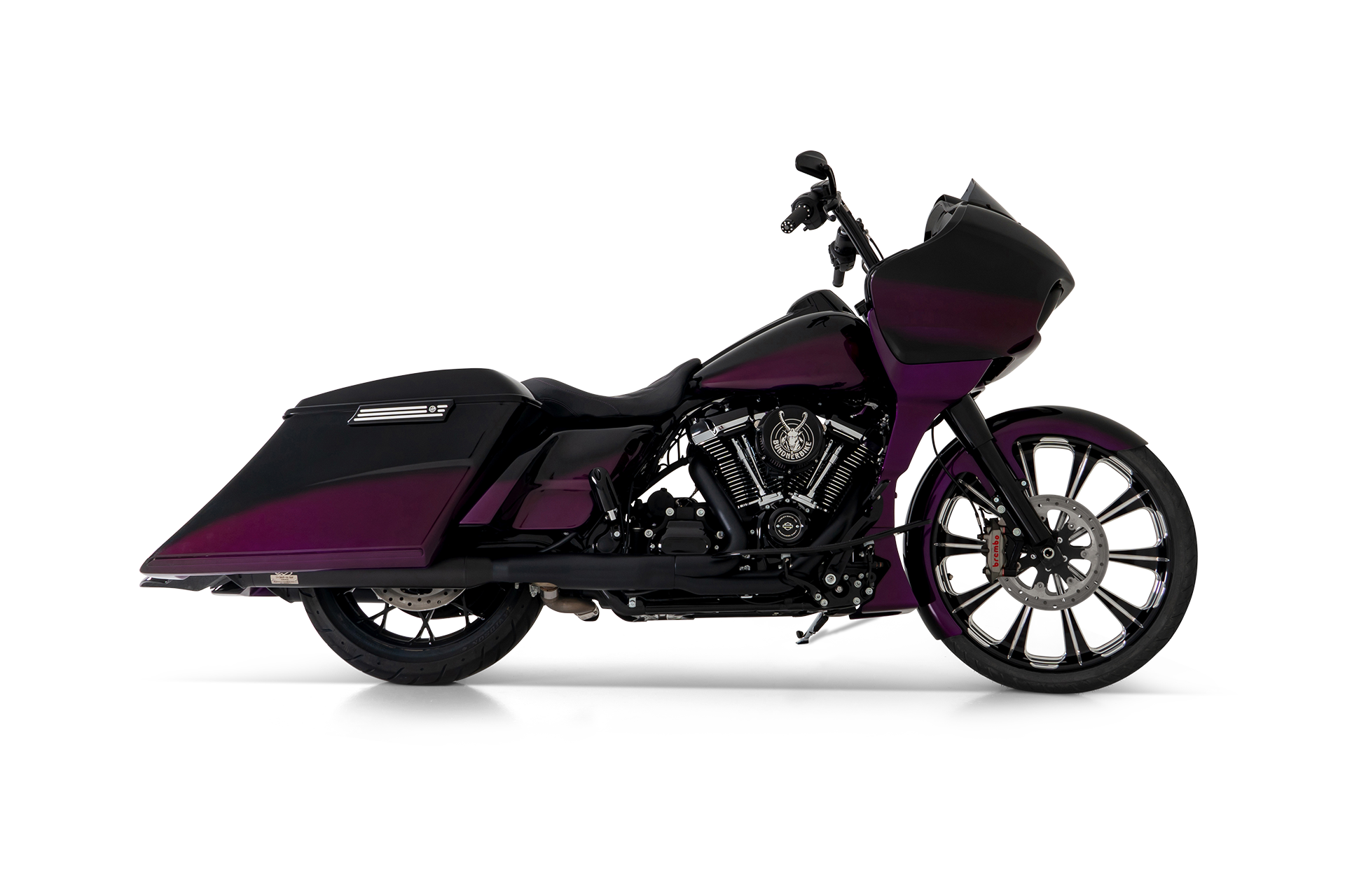 Die Bezeichnung "Bagger" im Zusammenhang mit Harley-Davidson Motorrädern steht für eine besondere Stilrichtung und Designphilosophie. Ursprünglich durch die charakteristischen Seitenkoffer (engl. „bags“) geprägt, haben sich Bagger-Bikes zu einer Ikone der Custom-Szene entwickelt. Ein typisches Merkmal eines Baggers ist das oft imposante große Vorderrad, das dem Bike eine aggressive und dynamische Frontansicht verleiht. Ergänzt wird dieses Erscheinungsbild durch die markante Frontverkleidung sowie Pull- oder Heap-Lenker, die in hoher oder breiter Ausführung einen kraftvollen und unverwechselbaren Auftritt garantieren.
