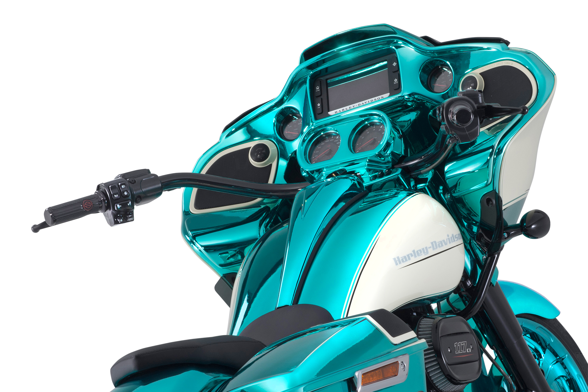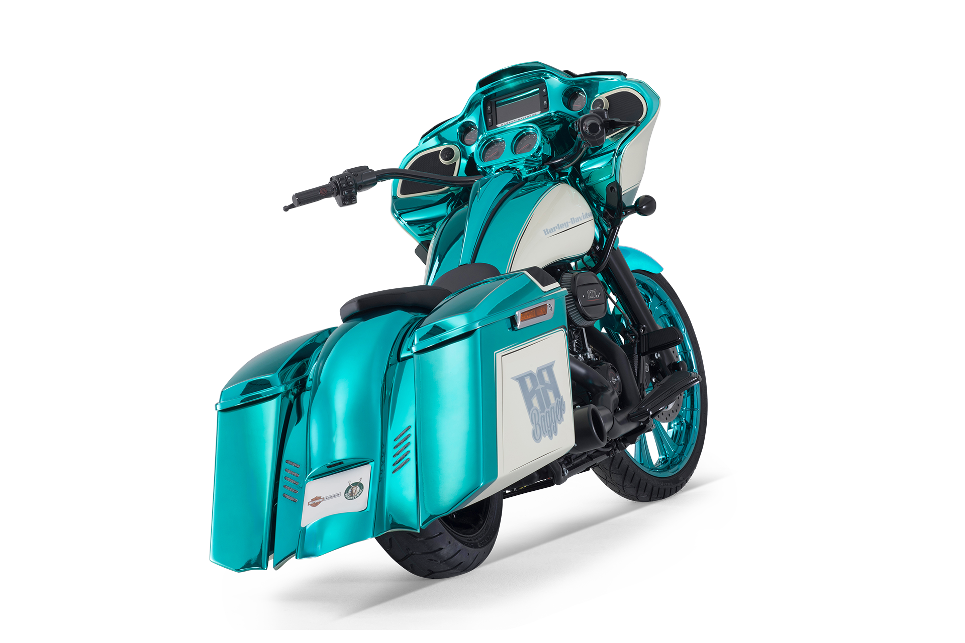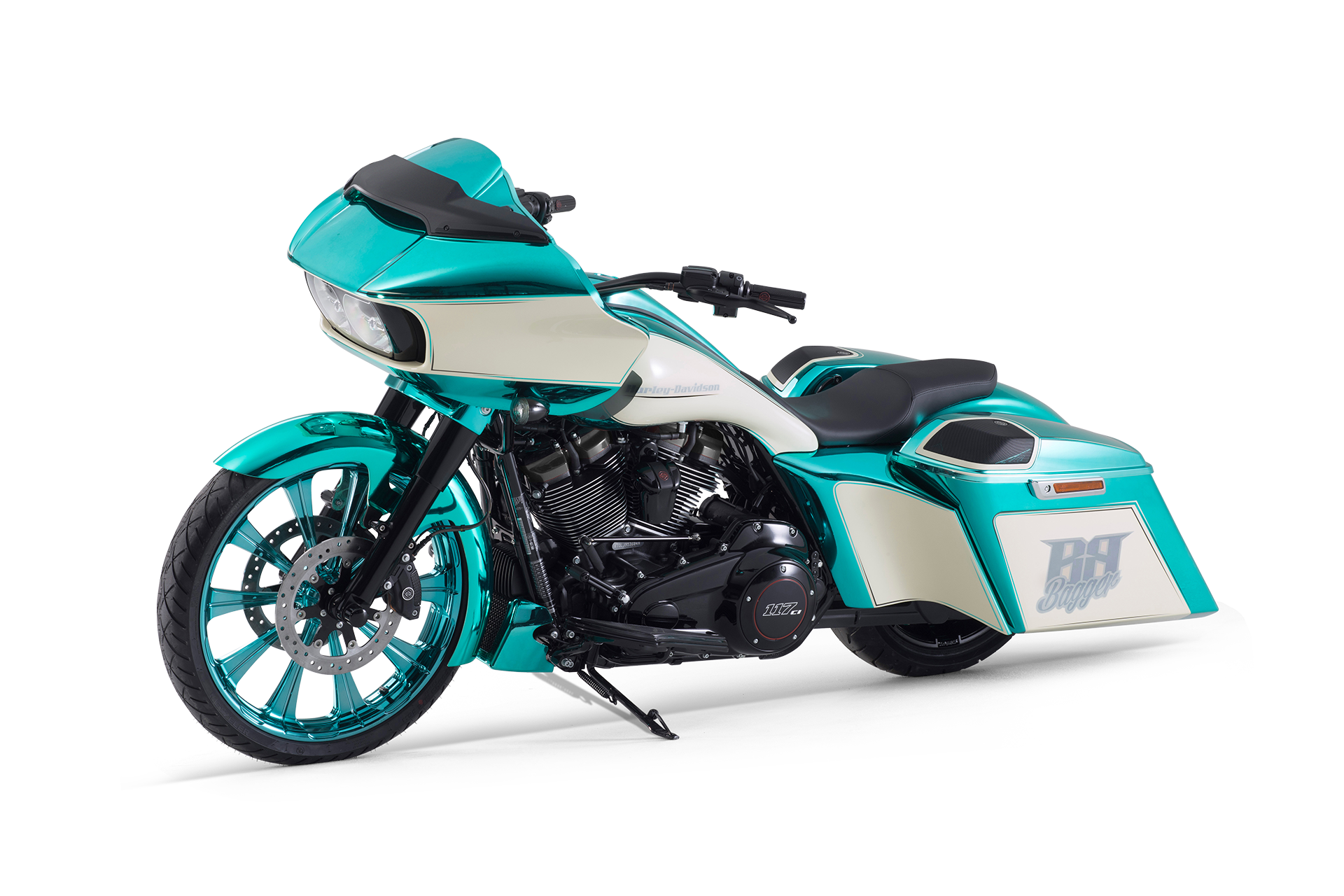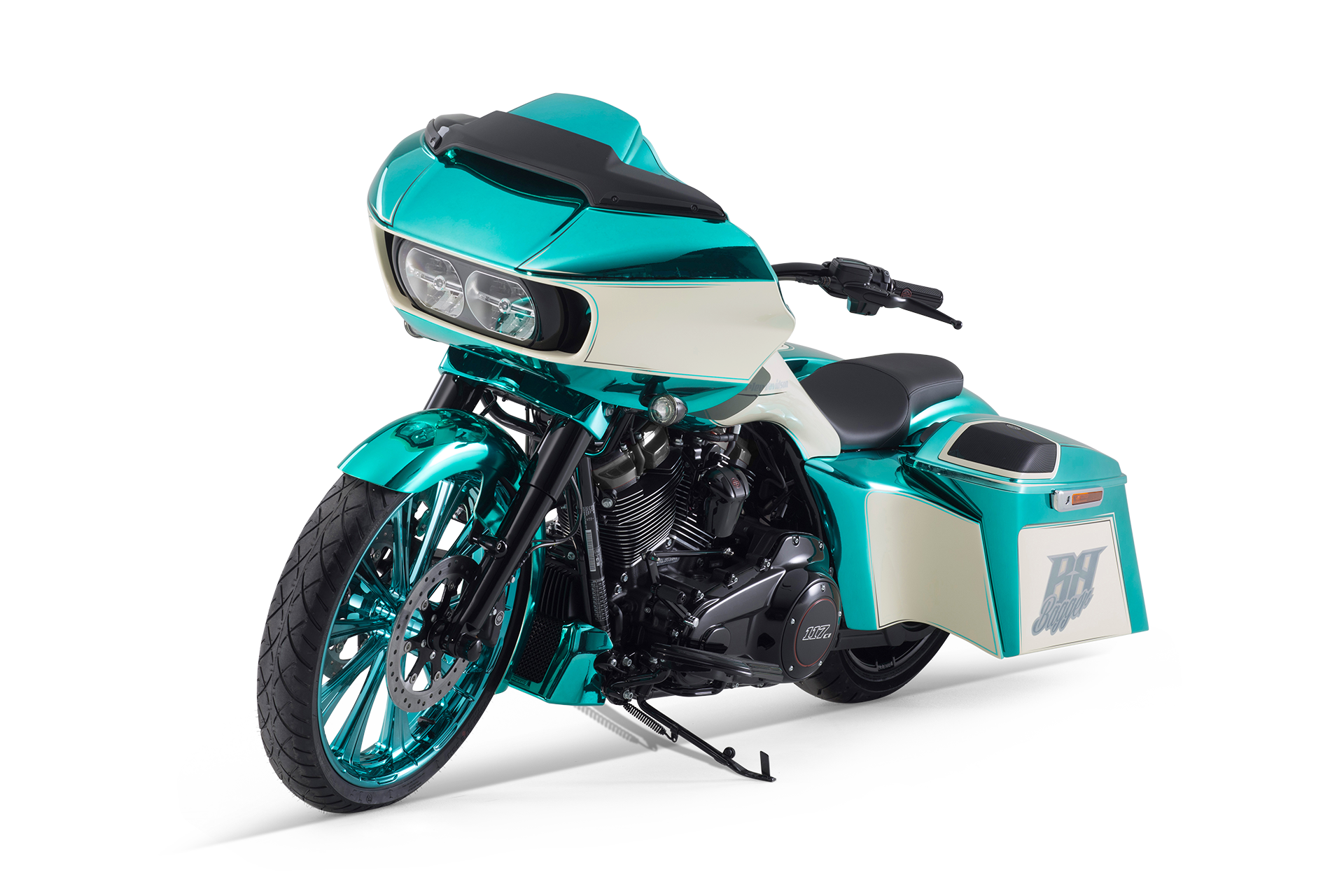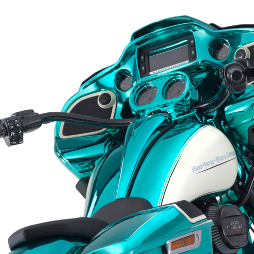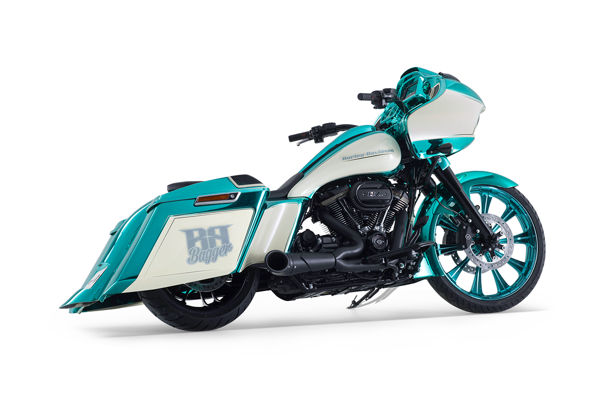 Der neue Bagger von Bündnerbike lässt Herzen höherschlagen: Auf Basis der Harley-Davidson Road Glide entsteht ein Motorrad, das mit seinem tiefen Heck, dem eindrucksvollen 23-Zoll-Vorderrad und der strahlenden Chrom-Grün-Lackierung pure Leidenschaft und Charakter verkörpert – gemacht für alle, die Freiheit auf zwei Rädern neu erleben wollen.