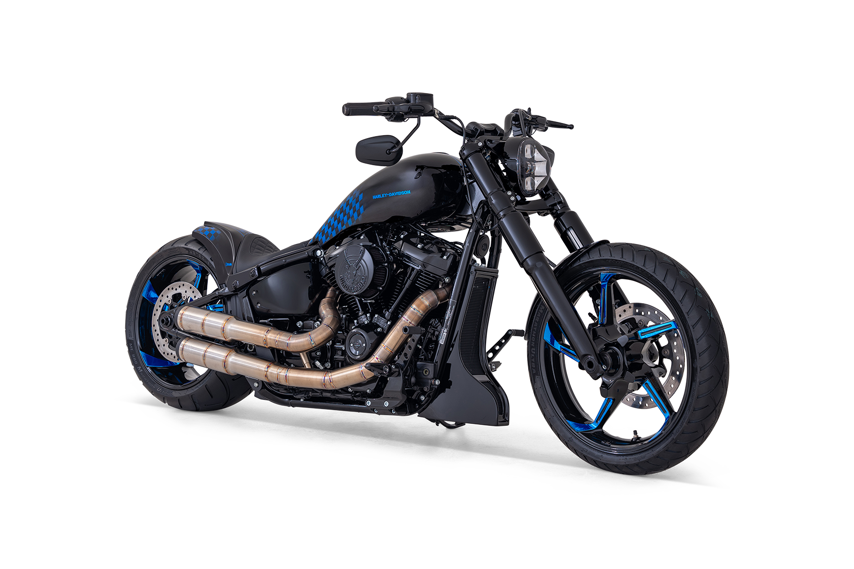 Mit der Harley-Davidson Cruiser Breakout 117 als Basis verkörpert die Midnight Chrome pure Eleganz und ungezähmte Kraft. Ihr tiefschwarzes Finish trifft auf markante Chromakzente, die im Sonnenlicht glänzen und bei Nacht geheimnisvoll schimmern. Sportlich, kompromisslos und mit einer Präsenz, die Blicke fesselt – dieses Bike ist gemacht für alle, die nicht nur fahren, sondern dominieren wollen. Midnight Chrome: Wo dunkle Eleganz auf glänzende Power trifft.