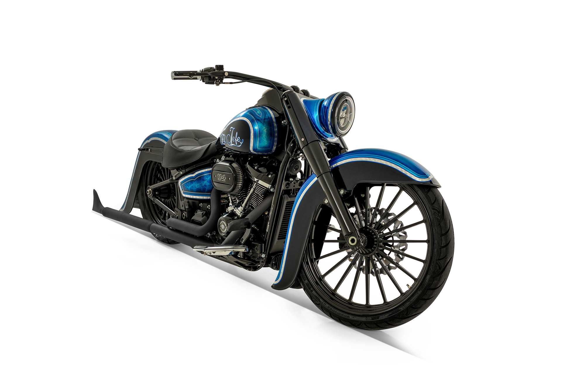 🔷 Die Kombination aus Schwarz und Blau verstärkt den markanten Chicano-Style und unterstreicht die fliessenden Linien des Custom-Designs.