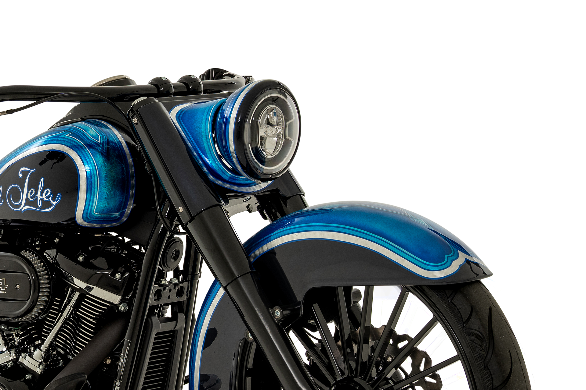 🔷 Inspiriert vom Chicano-Style, symbolisiert „El Jefe“ auch den Stolz und die Individualität der Custom-Bike-Kultur.