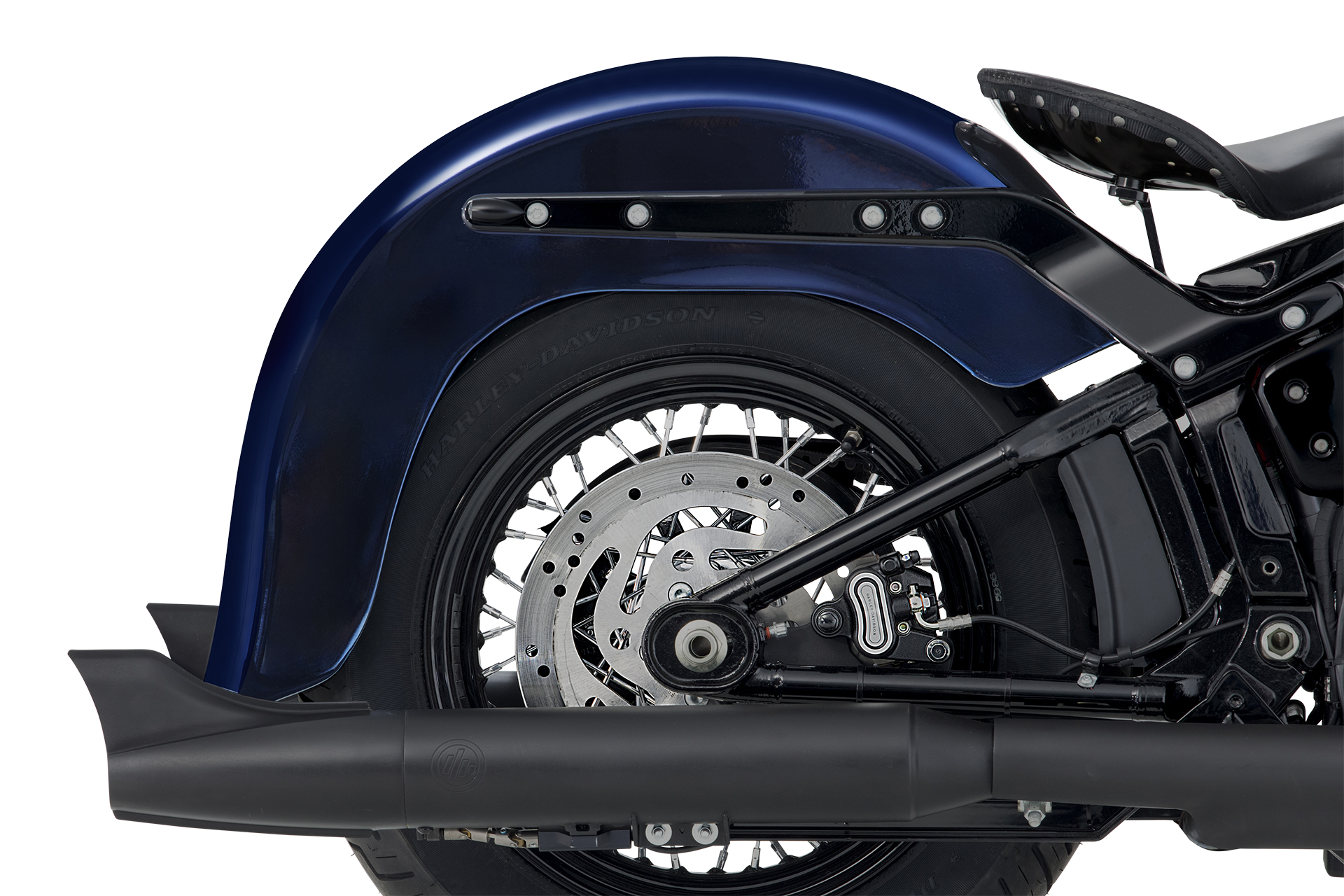 - Front- und Heckfender original Harley, jedoch verlängert und elegant angepasst – für die perfekte Chicano-Silhouette.