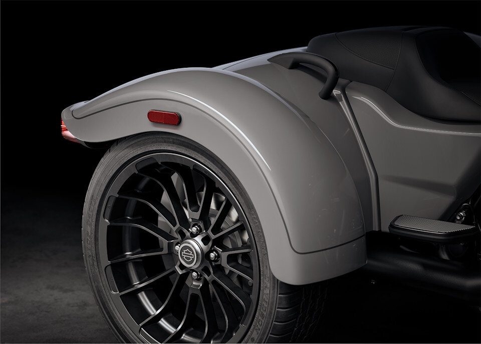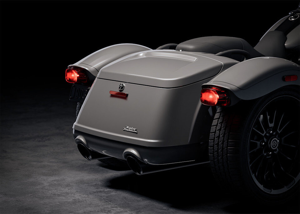 Die Freewheeler verbindet die Vorteile von drei Rädern in Bezug auf Stauraum und Beherrschbarkeit mit dem Stil und dem Charakter eines traditionellen abgespeckten Harley-Davidson Cruisers.